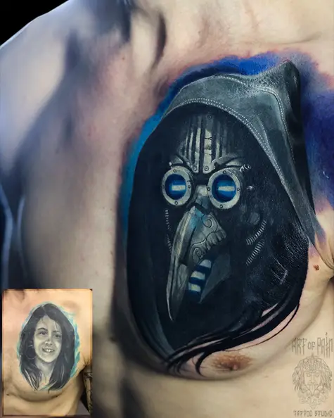 Татуировка мужская реализм на груди чумной доктор 6220