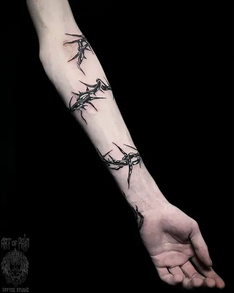 Татуировка мужская графика на руке колючка (внутренняя сторона руки) (Кирилл Плотников) 6248