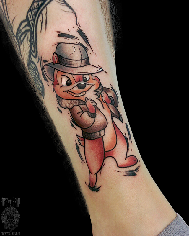 Татуировка мужская нью скул на голени Чип (Евгения Шмидт) 6258