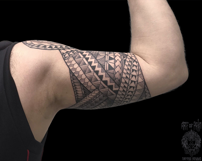 Татуировка мужская полинезия на плече орнамент 6307