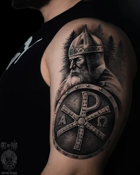 Татуировка мужская реализм на плече богатырь (Анастасия Юсупова) 6319