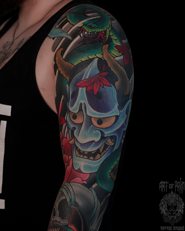 Татуировка мужская япония на плече Ханья 6328