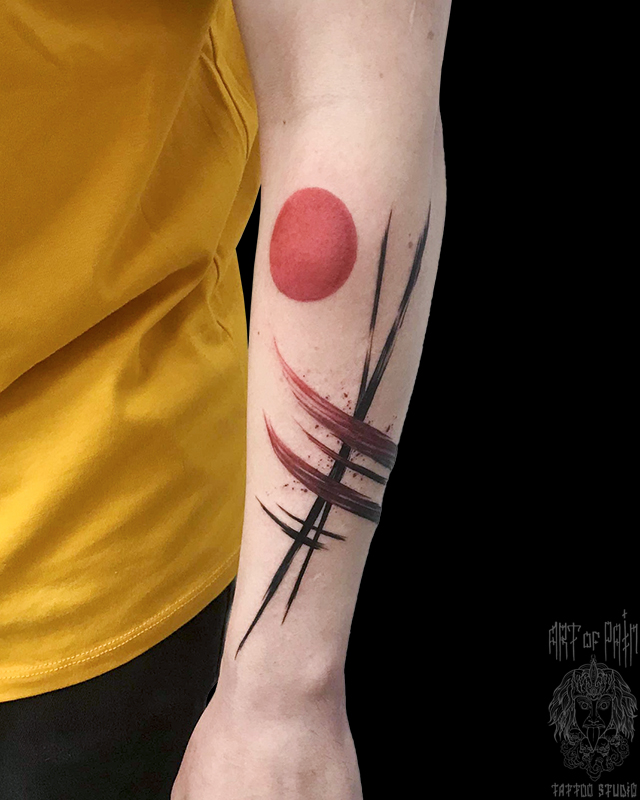 Татуировка мужская графика на предплечье солнце 6362