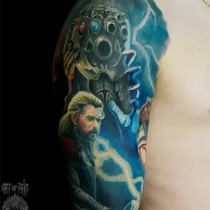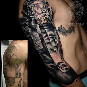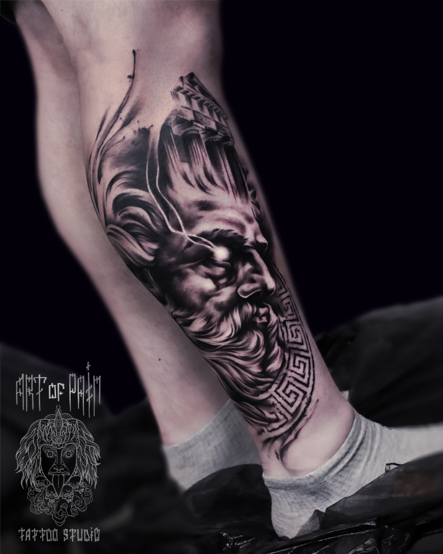 Татуировка мужская реализм на голени Зевс (Дмитрий Шейб) 6370