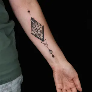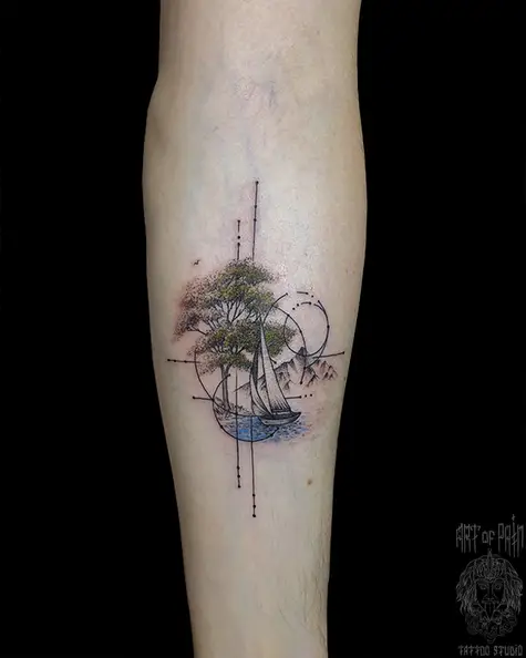 Татуировка мужская графика на предплечье пейзаж и парусник (Анастасия Родина) 6412
