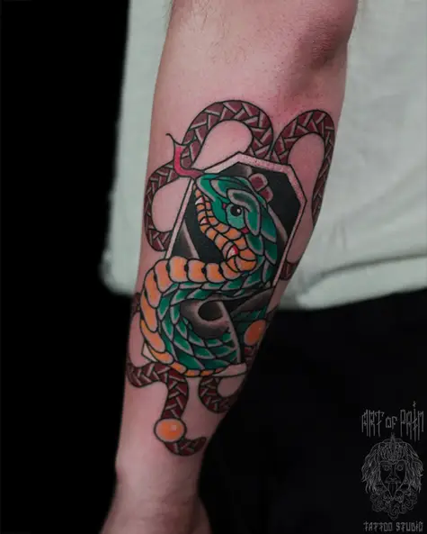Татуировка мужская япония на предплечье змея 6455