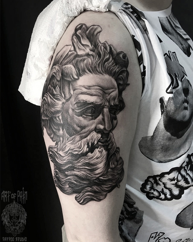 Татуировка мужская реализм на плече Посейдон 6478