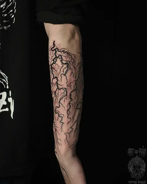 Татуировка мужская графика на предплечье молнии (вид сбоку) 6501