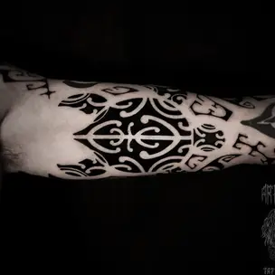 Татуировка мужская полинезия на голени орнамент 6504