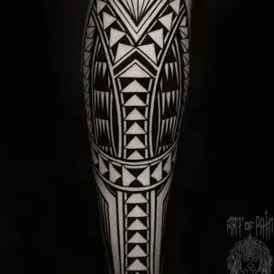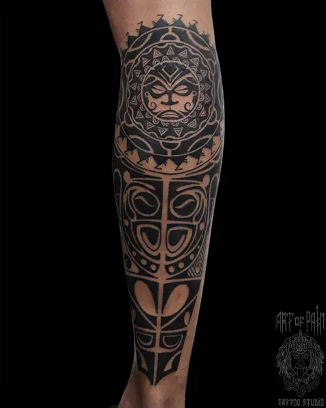 Татуировка мужская полинезия на голени орнамент 6504