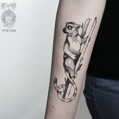 Татуировка мужская графика на предплечье лемур 651