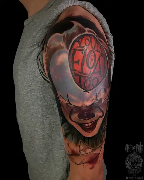 Татуировка мужская реализм и хоррор на плече Пеннивайз 6542