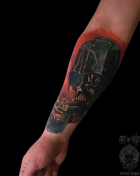 Татуировка мужская реализм на предплечье Дарт Вейдер 6543