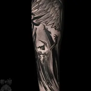 Татуировка мужская реализм и хоррор на предплечье вампир 6547