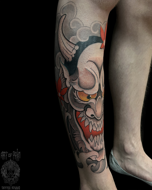 Татуировка мужская япония на голени Хання 6601