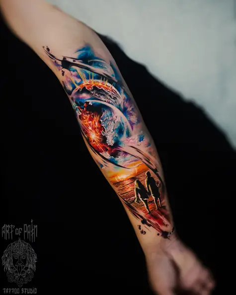 Татуировка мужская реализм на предплечье космос и люди (Дмитрий Шейб) 6610
