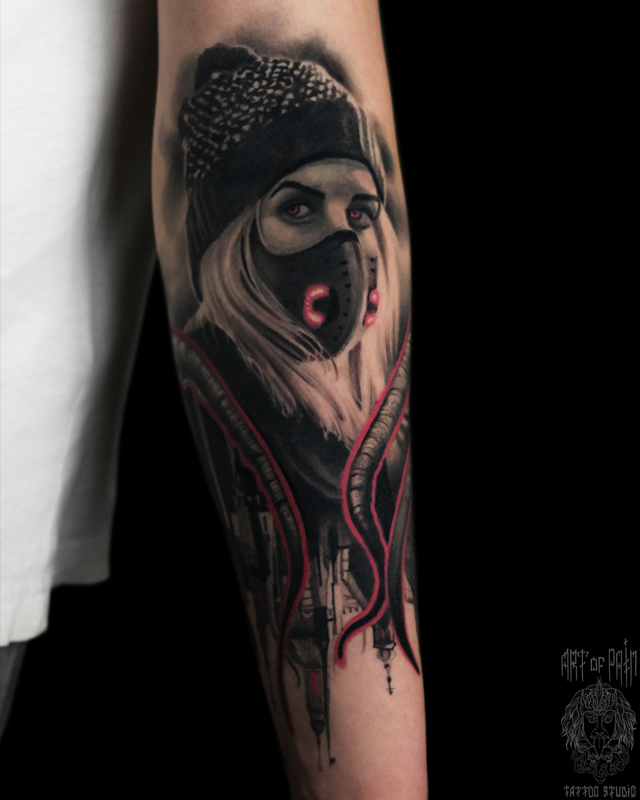Татуировка мужская реализм на предплечье девушка (Александр Pusstattoo) 6628
