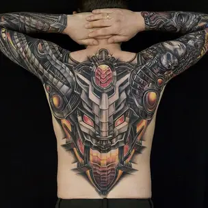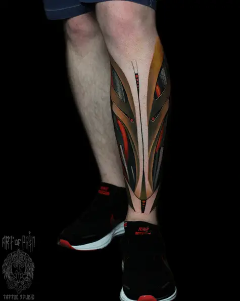 Татуировка мужская биомех на голени узор (Александр Pusstattoo) 6630