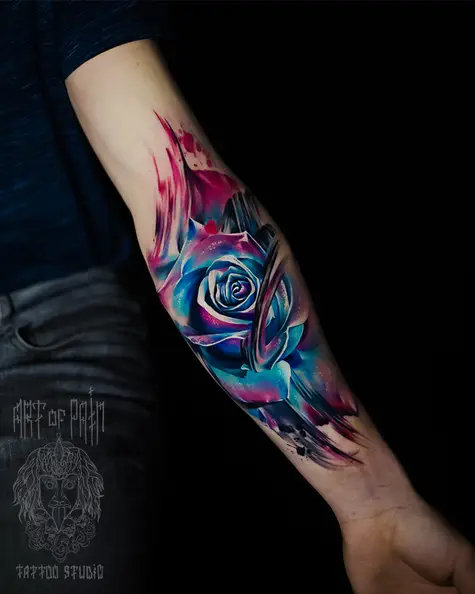 Татуировка мужская реализм на предплечье роза (Дмитрий Шейб) 6633