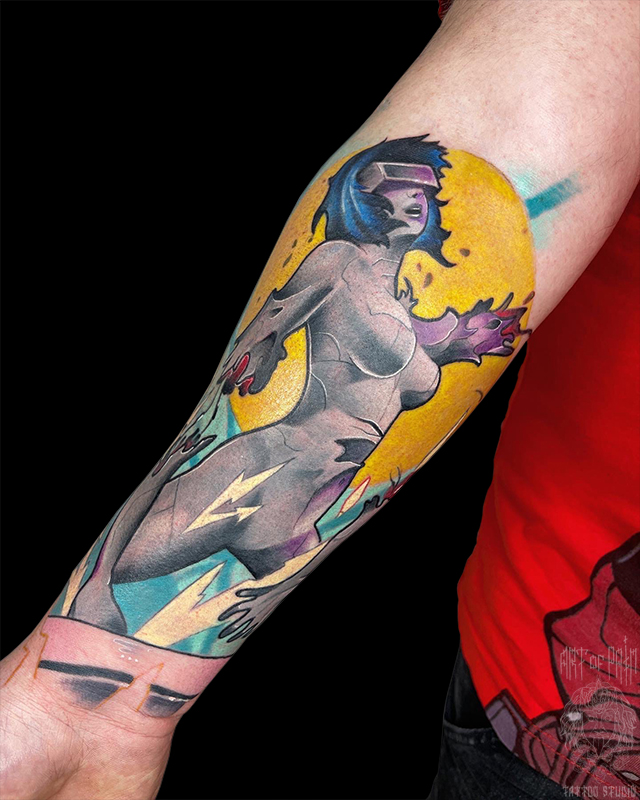 Татуировка мужская нью скул на предплечье девушка 6676