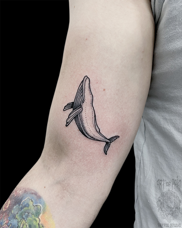 Татуировка мужская графика на руке кит (Николай Орф) 6685