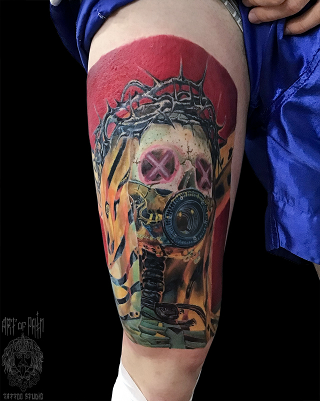 Татуировка мужская хоррор на бедре монстр 6711