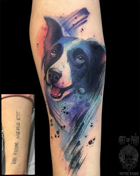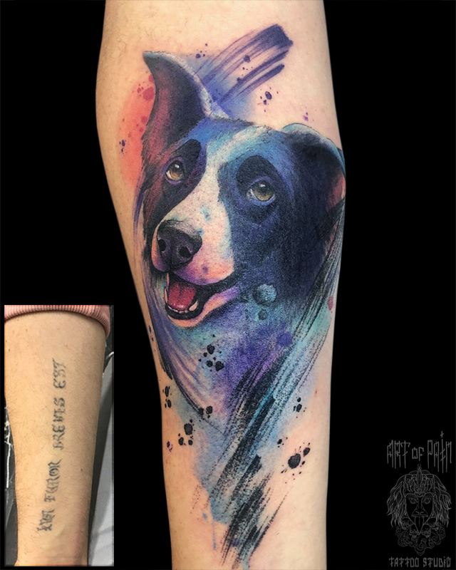 Татуировка мужская акварель на предплечье собака (Анастасия Родина) 6749