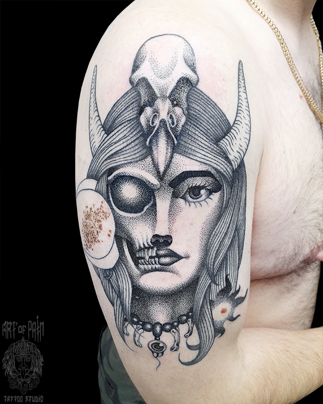 Татуировка мужская дотворк на плече монстр (Николай Орф) 6754