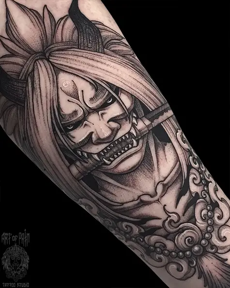 Татуировка мужская графика на предплечье демон с мечом (Денис Марченко) 6764