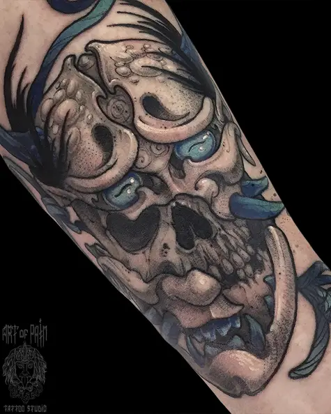 Татуировка мужская графика на предплечье Хання, череп (Денис Марченко) 6768