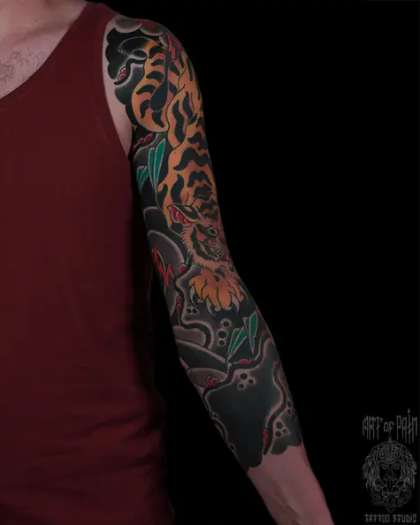 Татуировка мужская япония тату-рукав тигр 6791
