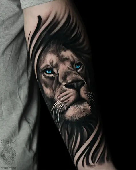 Татуировка мужская реализм на предплечье лев (Анастасия Юсупова) 6852