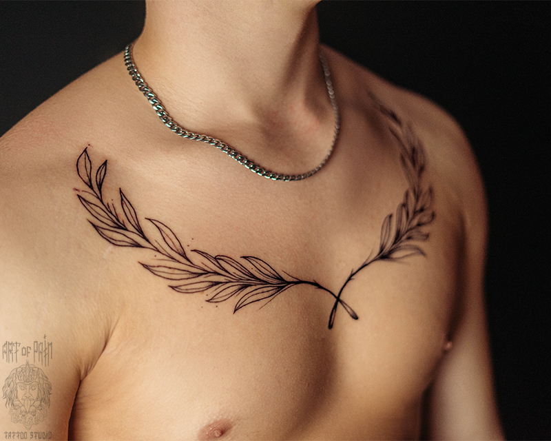 Татуировка мужская графика на груди лавр 6874