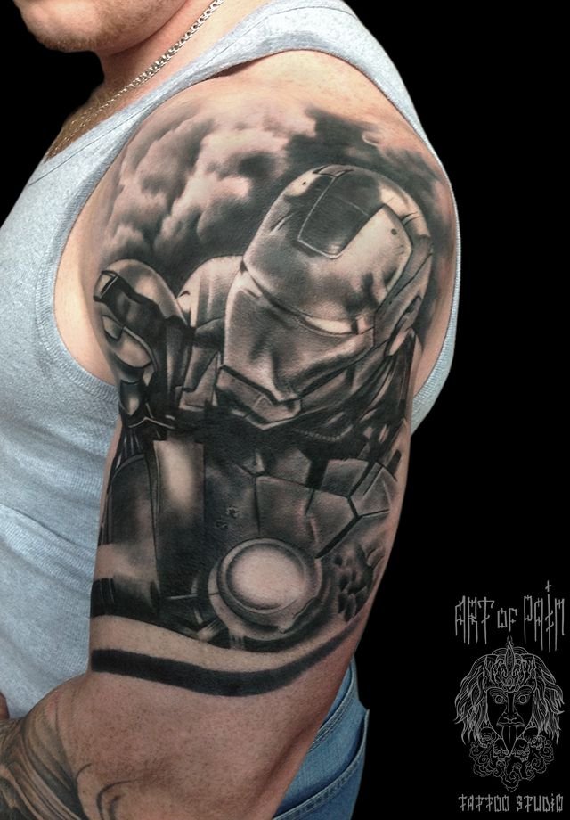 Татуировка мужская Black&Grey на плече железный человек 688