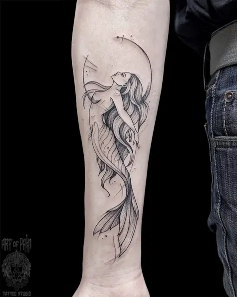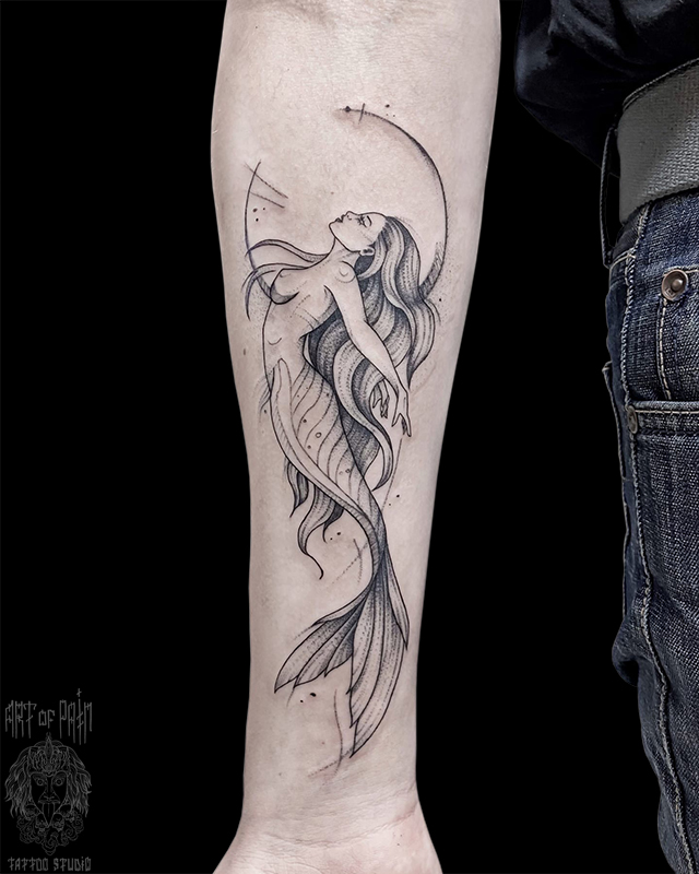 Татуировка мужская графика на предплечье русалка (Мария Котова) 6972