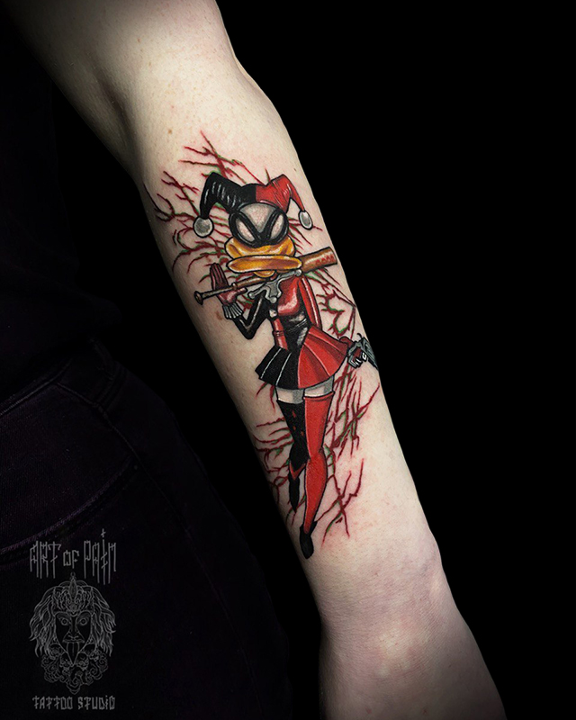 Татуировка мужская нью скул на предплечье утка Харли Квинн (Кирилл Плотников) 6986