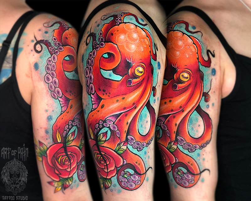 Татуировка мужская нью скул на плече осьминог 7025
