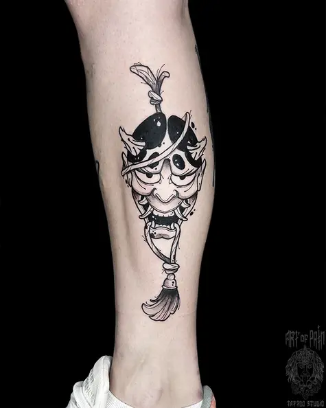 Татуировка мужская графика на голени демон Хання 7055