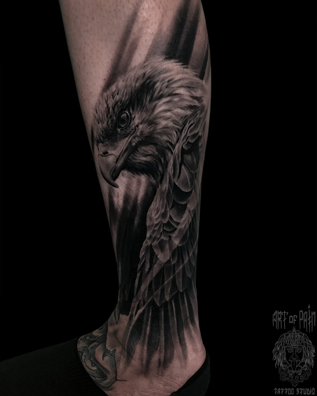 Татуировка мужская реализм на голени орел (Вячеслав Плеханов) 7071