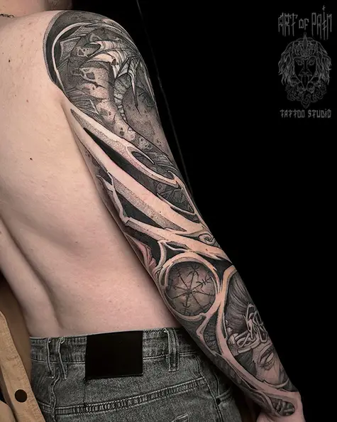 Татуировка мужская графика тату-рукав маг и дракон (Денис Марченко) 7104