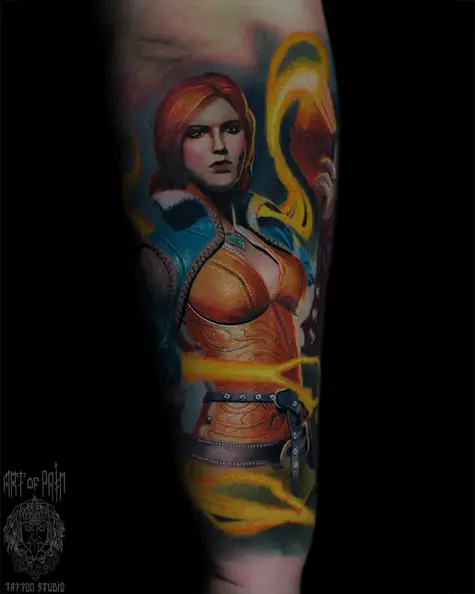 Татуировка мужская фентези на предплечье девушка-маг 7115