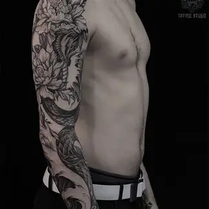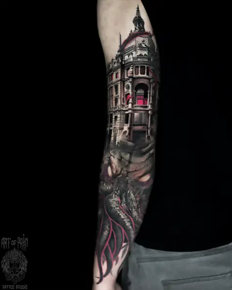 Татуировка мужская хоррор тату-рукав дом, Ктулху (Александр Pusstattoo) 7118