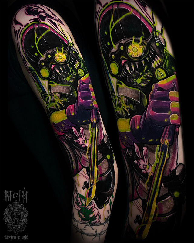 Татуировка мужская нью скул тату-рукав Октейн (Кирилл Плотников) 7120