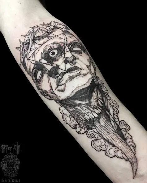 Татуировка мужская графика на предплечье монстр 7133