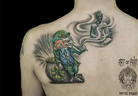 Татуировка мужская нью скул на лопатке леприкон 714