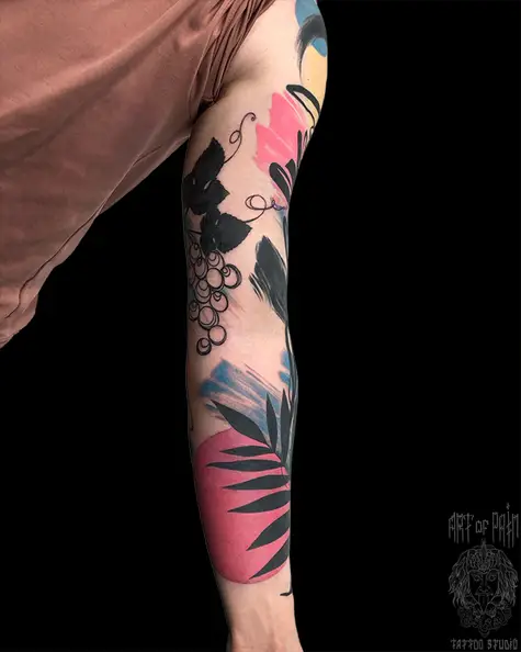 Татуировка мужская акварель тату-рукав виноград, растения (Анастасия Родина) 7189