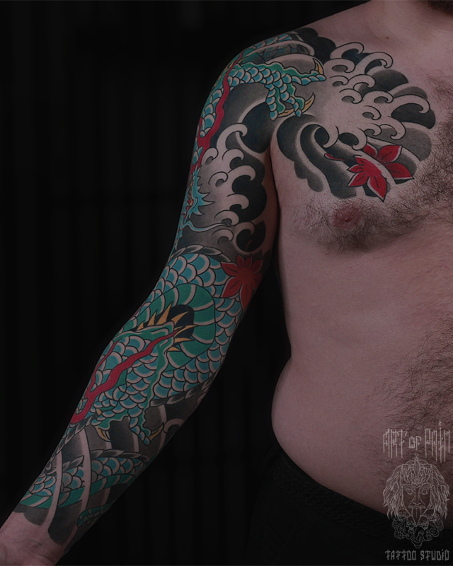 Татуировка мужская япония тату-рукав дракон 7215
