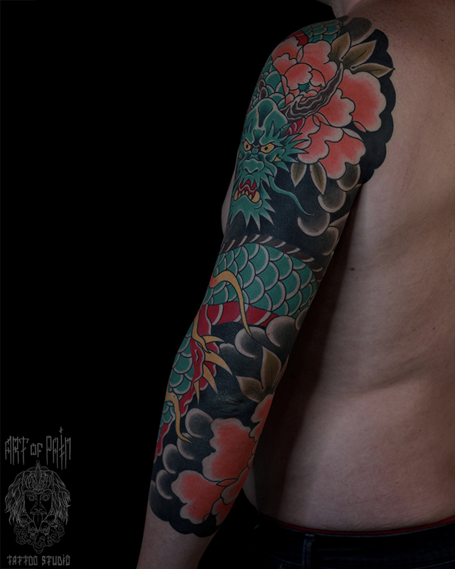 Татуировка мужская япония тату-рукав дракон 7218