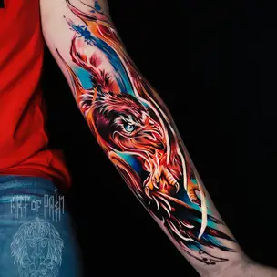 Татуировка мужская реализм на предплечье Безумный Макс (Александр Pusstattoo) 7261