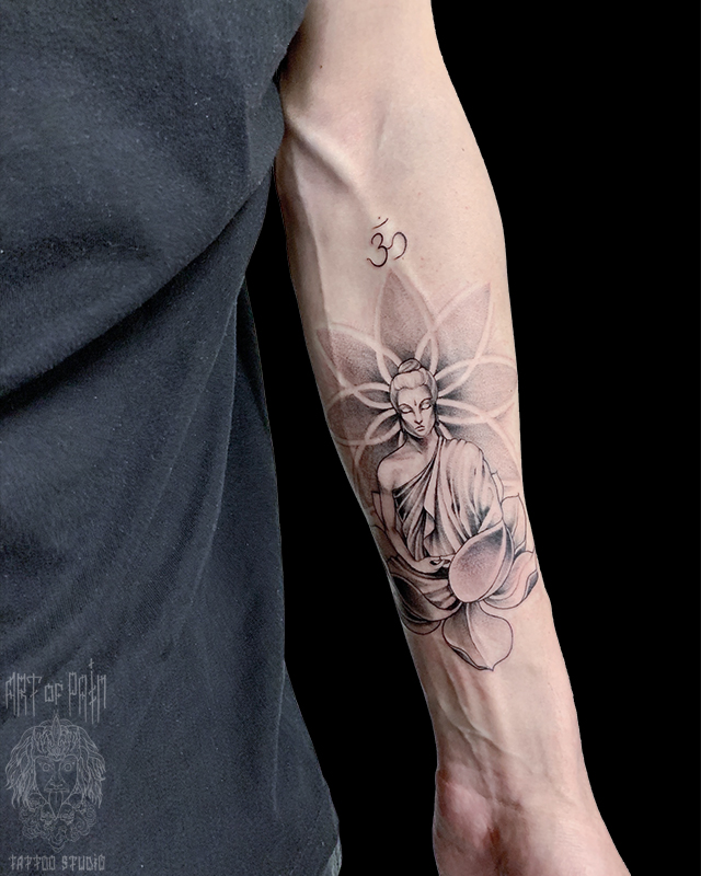 Татуировка мужская графика на предплечье Будда 7294